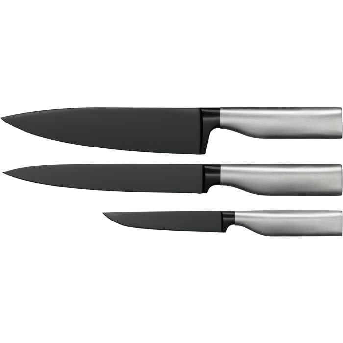 Combining everlasting sharpness with outstanding ergonomics and pure elegance, the Ultimate Black Knife Set is a genuine cutting innovation. The 3-piece set includes a chef's knife, carving knife and utility knife—kitchen essentials for all your cutting, chopping and slicing needs. Discover the best in cutting performance , with Ultimate Black Knives by WMF.