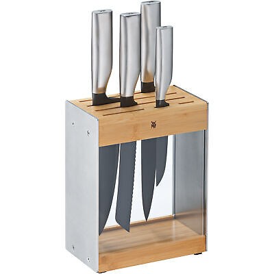 Discover a knife set that is as elegant as it high-performance. The WMF Ultimate Black Knife Block Set features four essential kitchen knives and a stunning transparent knife block designed to accommodate any type of knife—for maximum storage flexibility. Hand-forged in Germany, Ultimate Knives never need re-sharpening* thanks to WMF's exclusive Diamond Cut technology and a uniquely innovative manufacturing process.