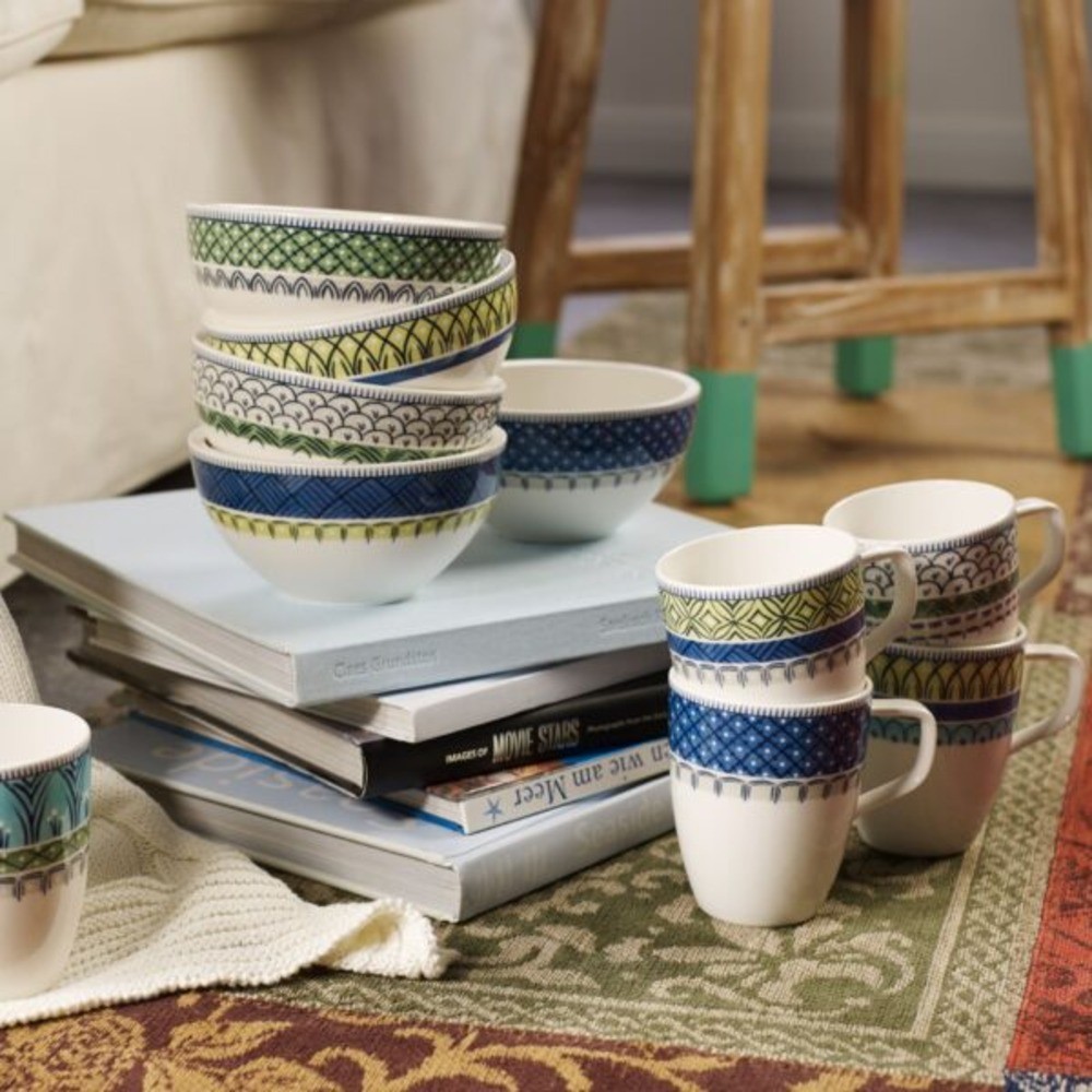 Casale Blu Bella mug. Unforgettably beautiful Italian style Casale Blu. From Perugia to Assisi and Lake Trasimene: Italys central Umbria region is steeped in history. The Casale Blu pattern was inspired by the ancient ceramic-making tradition around the Tiber and Chiascio rivers. Subtle Blu and green Mediterranean patterns give the popular Artesano collection a whole new look. Add an Italian twist to your afternoon coffee or a dash of Mediterranean chic to a light brunch in the garden or a speci