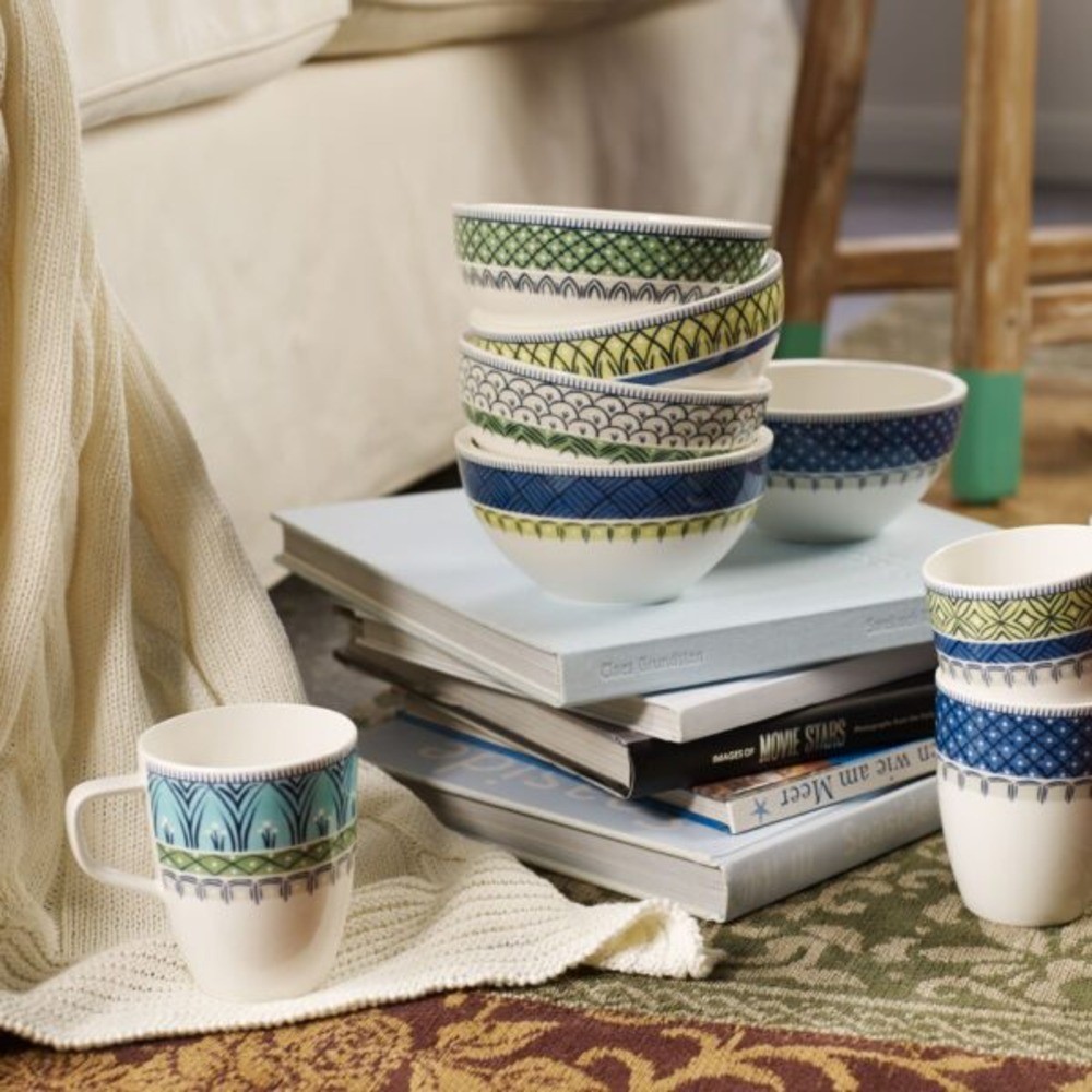 Casale Blu Dorina mug. Unforgettably beautiful Italian style Casale Blu. From Perugia to Assisi and Lake Trasimene: Italys central Umbria region is steeped in history. The Casale Blu pattern was inspired by the ancient ceramic-making tradition around the Tiber and Chiascio rivers. Subtle Blu and green Mediterranean patterns give the popular Artesano collection a whole new look. Add an Italian twist to your afternoon coffee or a dash of Mediterranean chic to a light brunch in the garden or a spec