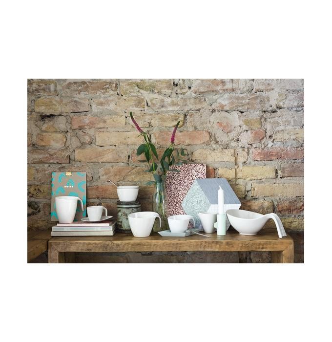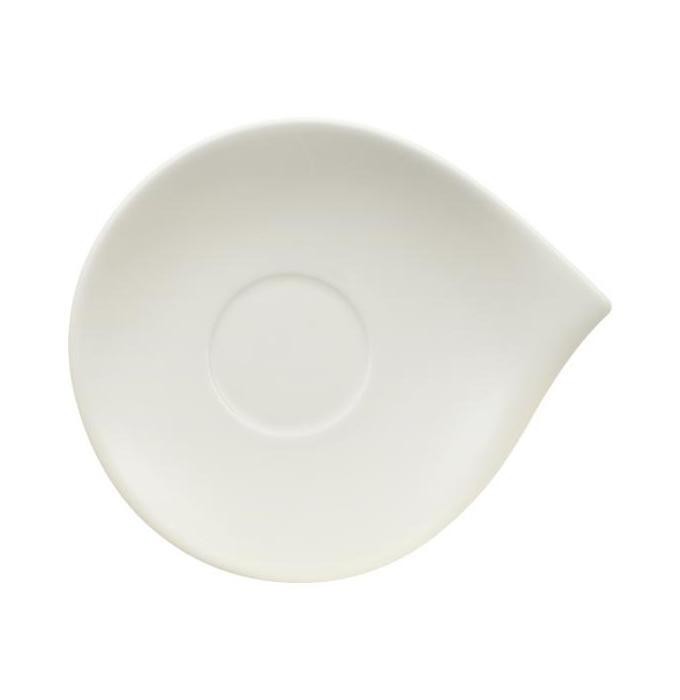 Saucer with a modern design for sweet treats with coffee The elegant, pure white Flow crockery range made of high-quality Premium Porcelain captivates with bold curved lines and a timeless elegance. Modern porcelain design, perfect for every occasion whether casual or a certain chic. This saucer is large enough for biscuits, pastries and other treats with coffee. Enjoy practical tableware details.