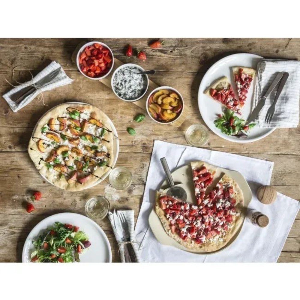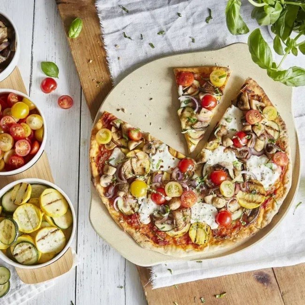 Villeroy & Boch, Pizza passion. Oven-resistant stoneware (cordierite) pizza stone. Practical thanks to the two handles and slightly raised edges to prevent liquids from spilling. It can be cleaned with a damp cloth. The pizza plate is essential if you want to obtain a result like in a pizzeria. Villeroy & Boch produces household objects, dinner sets and vases. It is also highly appreciated for its Christmas and Easter themed collections.